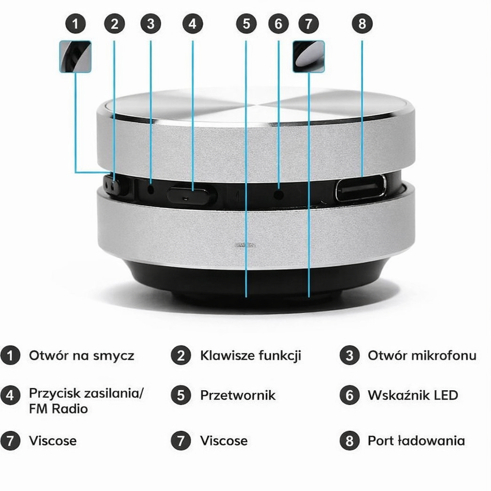 Tak, dzięki kompaktowym wymiarom 4x4 cm zmieścisz je nawet w kieszeni. Wbudowana bateria polimerowa o pojemności 400 mAh pozwala na długie sesje słuchania ulubionej muzyki lub radia FM. Ładowanie odbywa się wygodnie przez port USB, więc możesz je zabrać dosłownie wszędzie, gdzie tylko zechcesz.